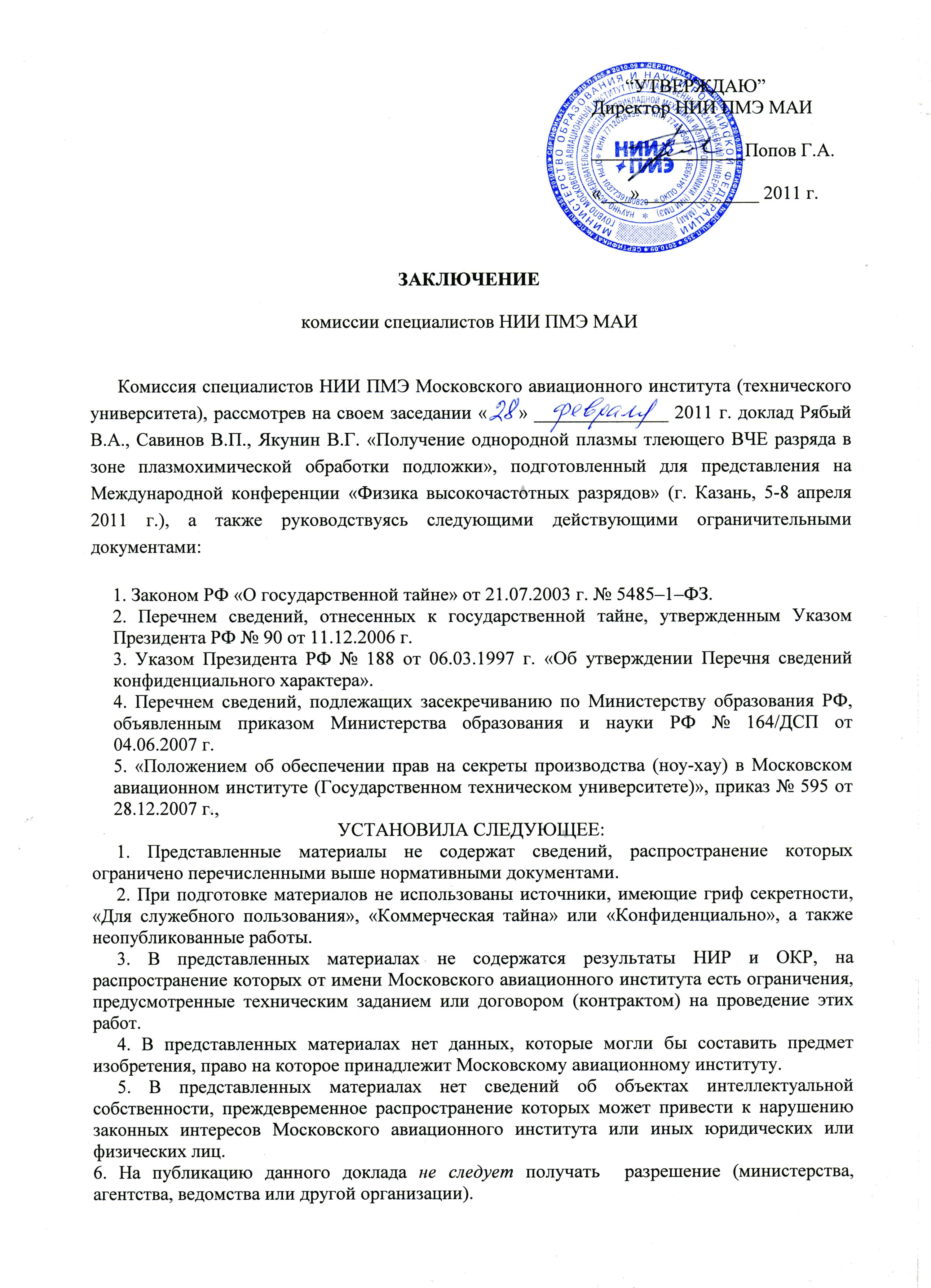 В.Е. Подзин, В.П. Фомичев, А.Б. Шевченко, М.А. Ядренкин |