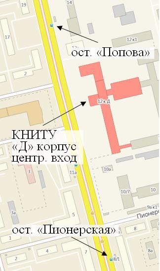 Схемы расположения корпусов КНИТУ относительно остановок общественного транспорта: